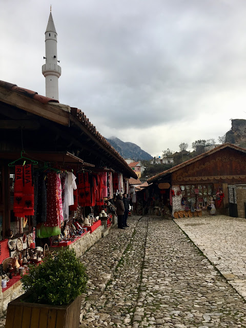 Here, we were given some time to check out the main shopping street, which was hopping, possibly because it was Valentine's Day. Or perhaps it is just always busy. Dean let us in on some advice he had received from an Albanian friend about driving in a place where there appear to be no rules whatsoever: "Always wear dark glasses so that they don't see your fear."