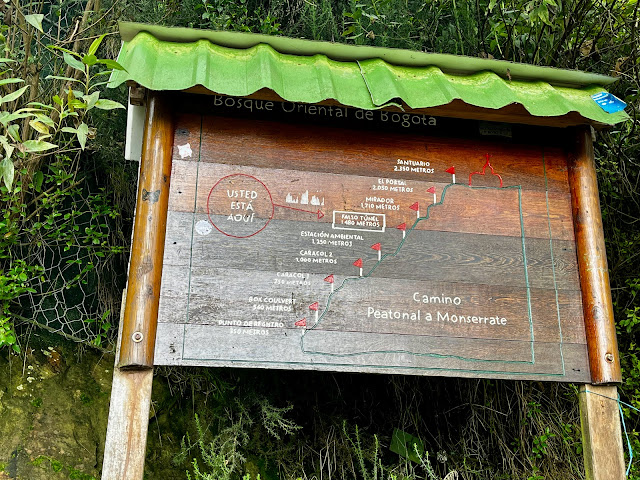 But no, I did none of those things. Instead, I decided that instead of working out in my room or at the hotel gym like a normal person, it would be a good idea to hike to the top of Montserrate. That is 2,350 meters (or 7,709 feet) worth of hiking! That is 1,115 steps worth of hiking!! And here is the kicker, Bogota sits at an elevation of 8,612 feet!!! That's 3,300 feet higher than Denver aka the Mile High city. The practical ramifications of this that oxygen doesn't fucking work at that altitude.