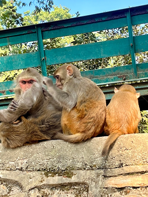 But more importantly, it is also known as the Monkey Temple and with good reason. They are simply everywhere. There are so many of them that they even have an origin story. The story involves Manjushree, a Buddhist holy man, who while trying to raise the hill that now houses the temple, refused to cut his hair. His grooming habits must have left a bit to be desired because he came down with a nasty case of lice. Those lice wanted more out of life so they jumped off of his head and transformed themselves into monkeys. True story or cautionary tale for children who don't want to wash their hair? Who knows. Point is there are a lot of monkeys at this temple.